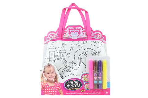 Vybarvovací kabelka obsahuje 4 speciální fixy určené pro vybarvování textilu a ozdobné kamínky. Velikost kabelky cca 21 x 17 cm. Rozměry balení cca 23 x 23 x 3 cm. Věk 3+ prečítať celé