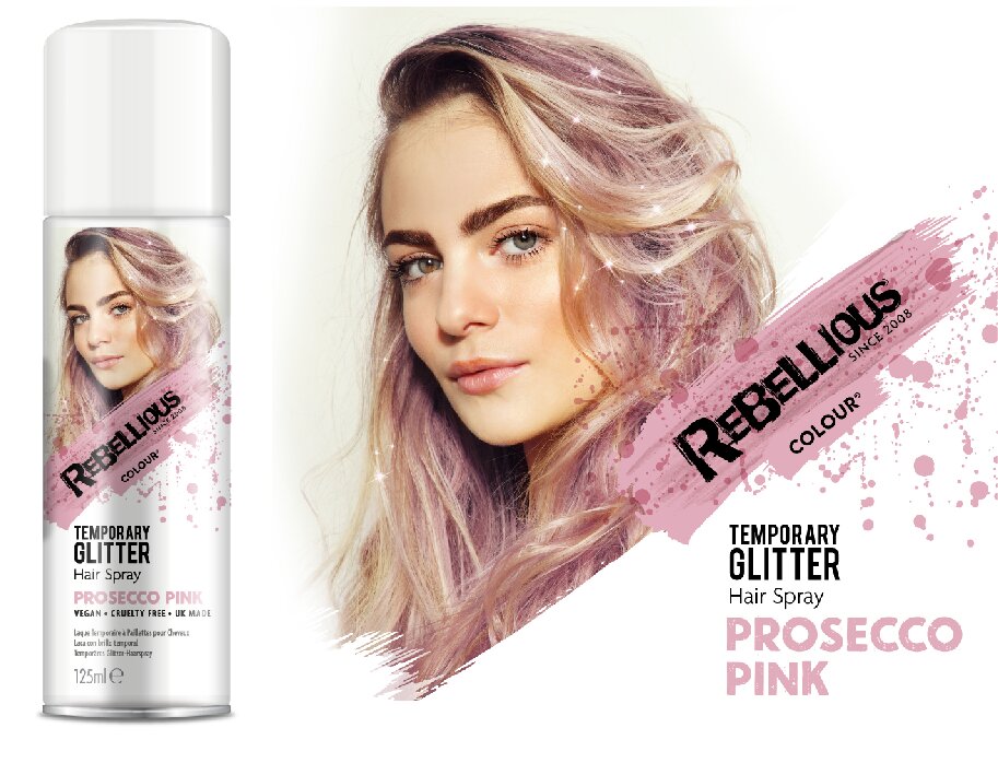 Dočasný třpytivý sprej na vlasy, 125 ml - Růžový "Prosecco Pink"