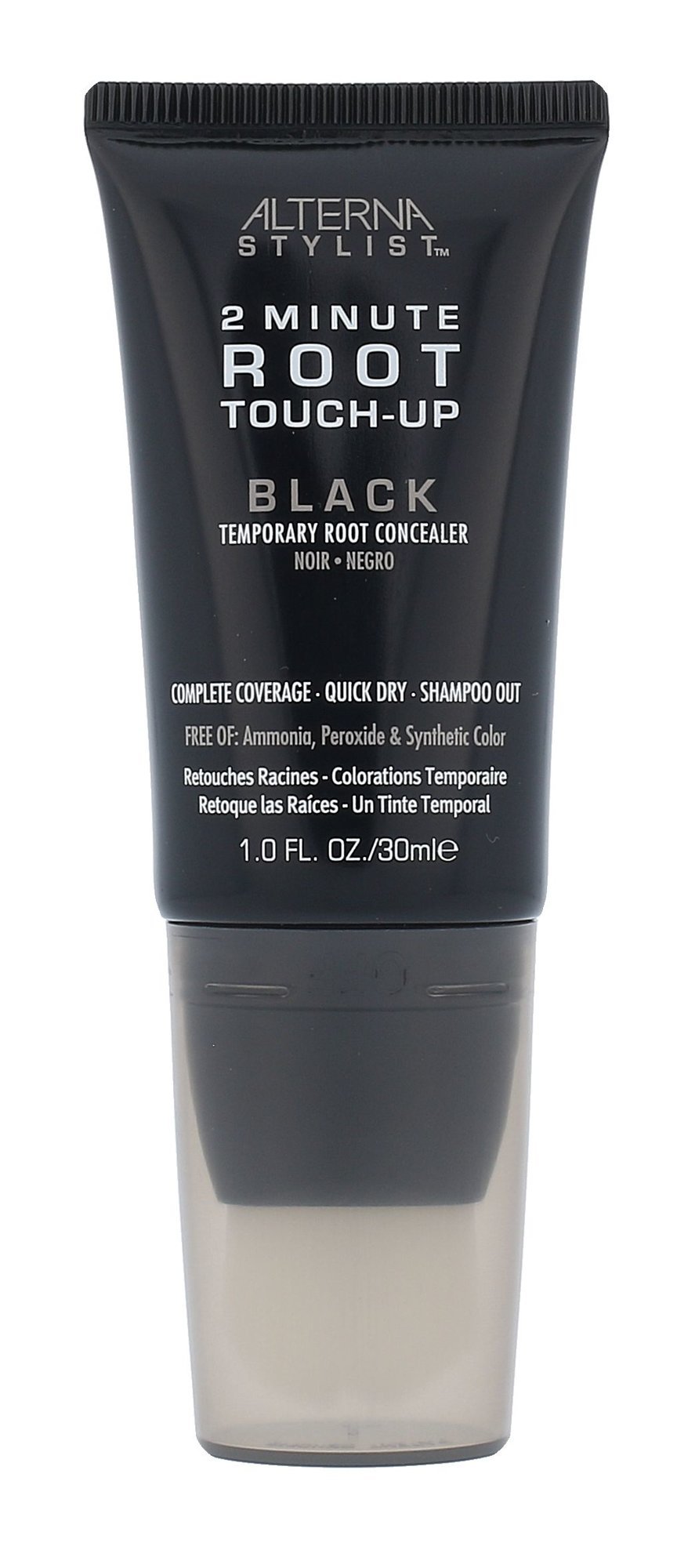 Vlasový korektor odrostů Alterna Stylist 2 Minute Root Touch-Up Hair Concealer pro černé vlasy. Snadno se aplikuje pomocí aplikátoru v podobě štětce. Rychle zasychá, barva se nedrolí a nabízí dokonalý krycí účinek.