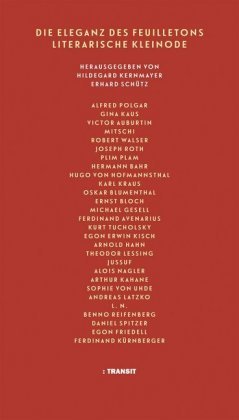 Mit Texten u.a. von Alfred Polgar, Joseph Roth, Egon Erwin Kisch, Robert Walser, Kurt Tucholsky, Victor Auburtin, Sophie von Uhde, Ruth Landshoff-Yorck, Emmy Hennings, Ferdinand Kürnberger, Ludwig Speidel, Daniel Spitzer, Karl Kraus, Lina Loos, Gina Kaus oder Vicky Baum.