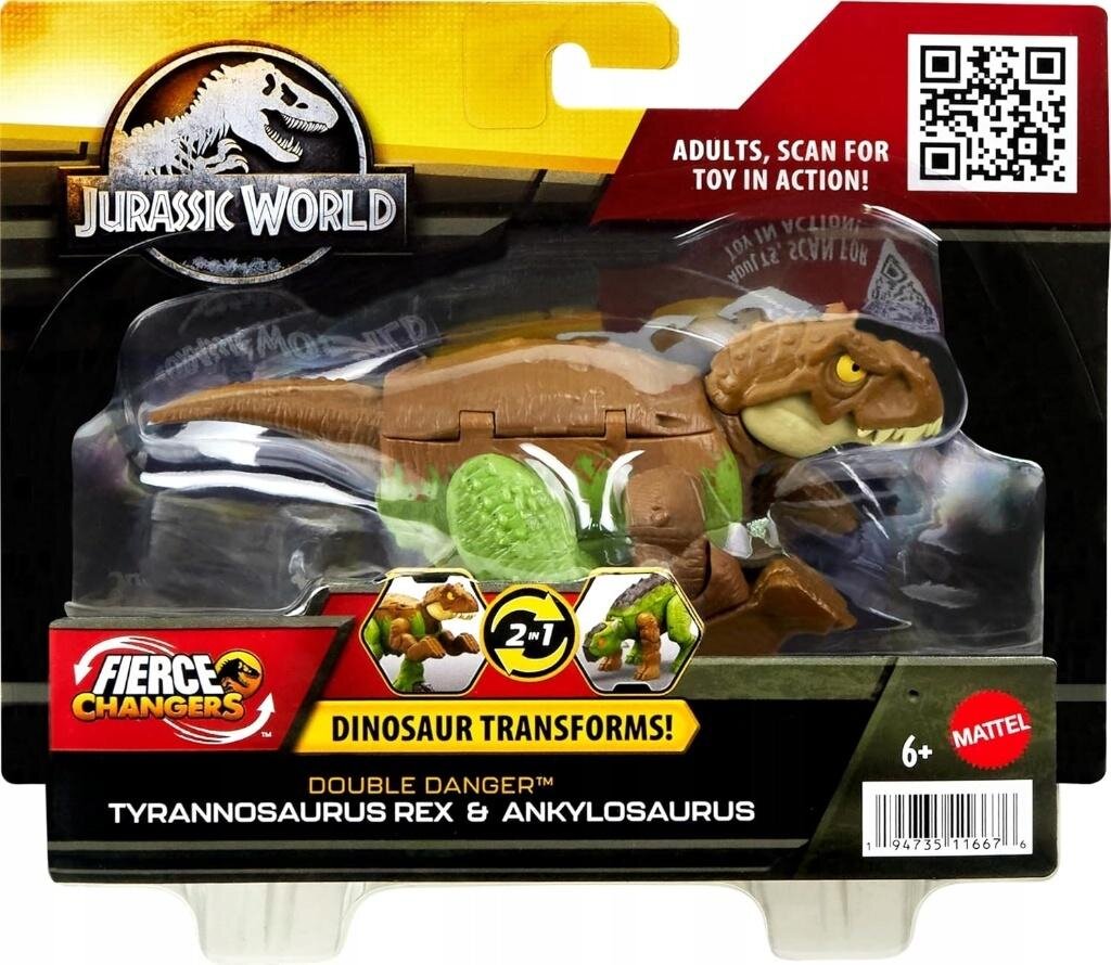 Te figurki Fierce Changers Double Danger z linii Jurassic World Double Danger zapewniają wielbicielom dinozaurów podwójną dawkę zabawy. Roślinożercy przekształcają się w drapieżniki i z powrotem w 11 prostych krokach! Dostępne są 4 różne figurki dwa w jednym. Tyranozaur zamienia się w Ankylozaura...