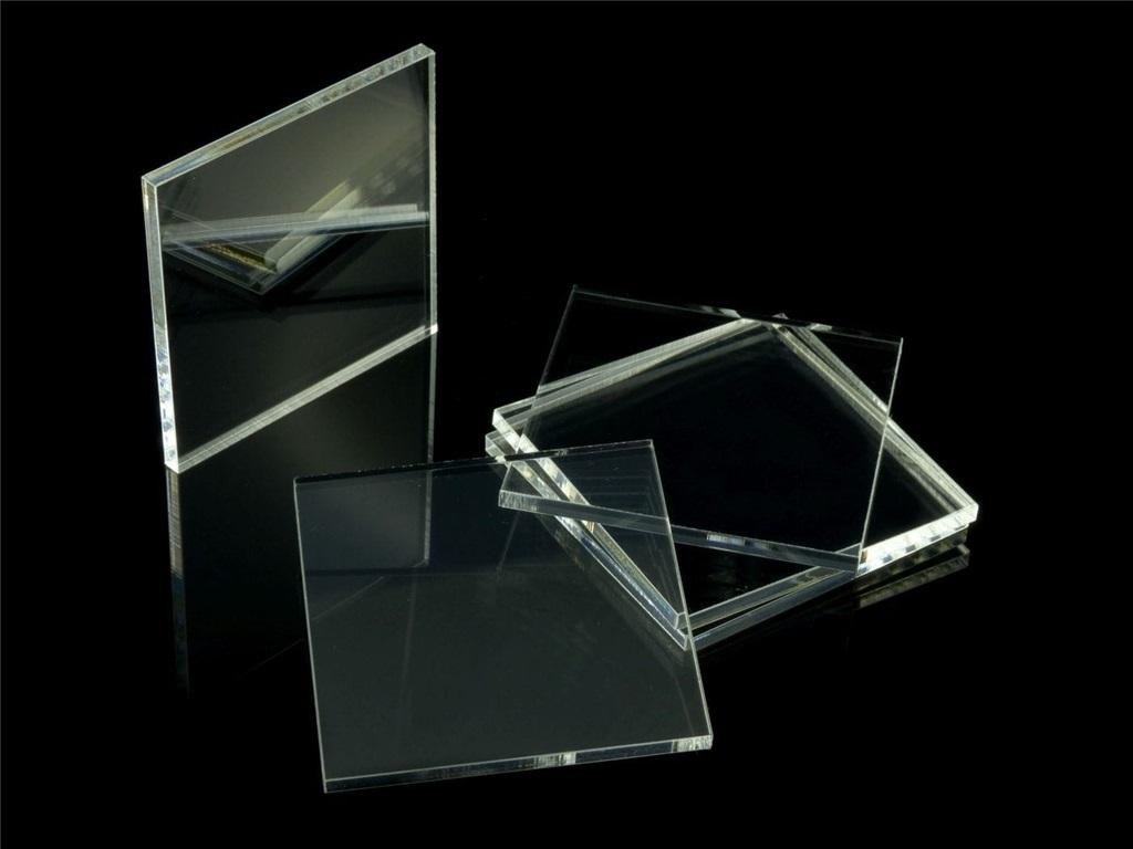 Akrylowe podstawki pod figurki w kształcie kwadratu, transparentne, o boku 50 mm i grubości 3 mm, 5 sztuk.