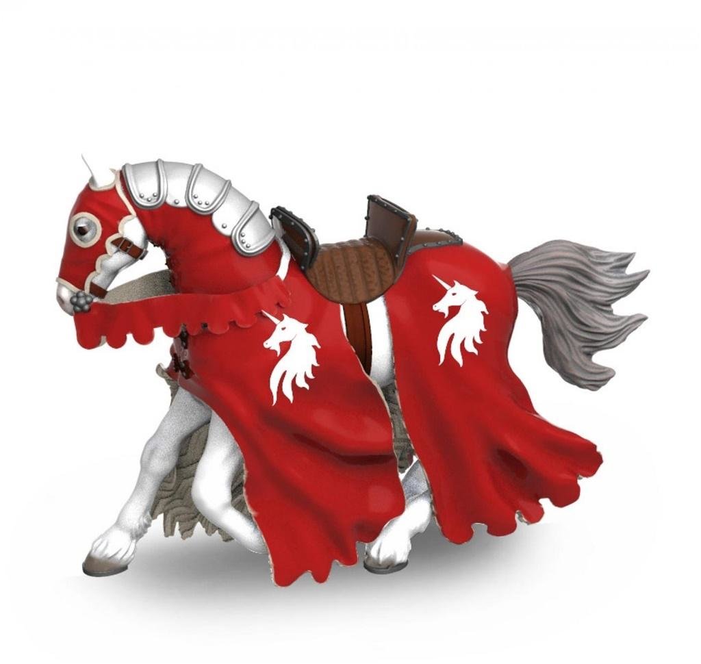 Koń czerwonego rycerza z włócznią