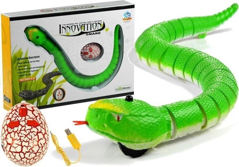 Wąż sterowany pilotem na podczerwień Zielony Twoje dziecko uwielbia robić psikusy domownikom i kolegom? A może tym razem to Ty szukasz czegoś, czym go zaskoczysz? Wybierz zdalnie sterowanego realistycznego węża, który porusza się, wystawia język i świeci. Twój maluch na pewno będzie zadowolony!...