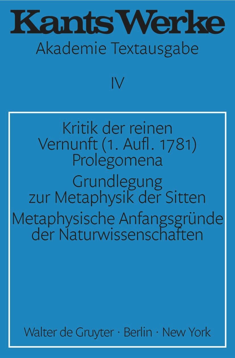 Kritik der reinen Vernunft (1. Aufl. 1781). Prolegomena. Grundlegung zur Metaphysik der Sitten. Metaphysische Anfangsgründe der (německy)