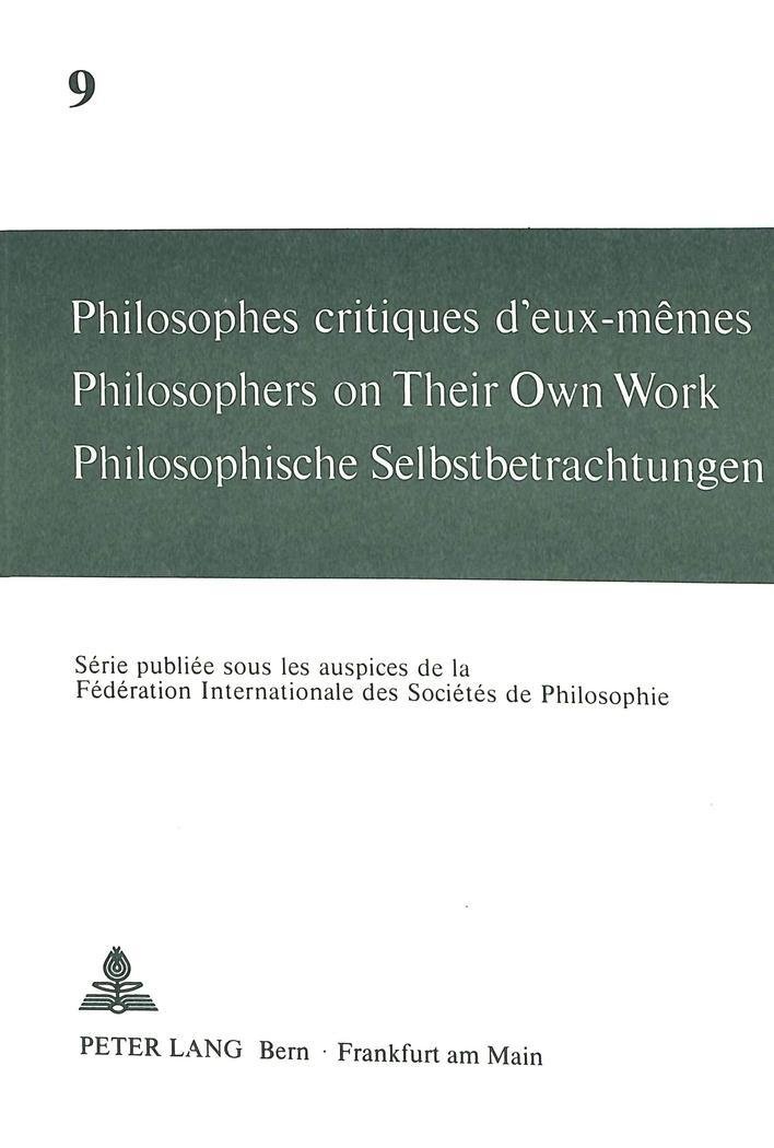 Philosophes Critiques D'Eux-Memes. Philosophers on Their Own Work. Philosophische Selbstbetrachtungen (francouzsky)