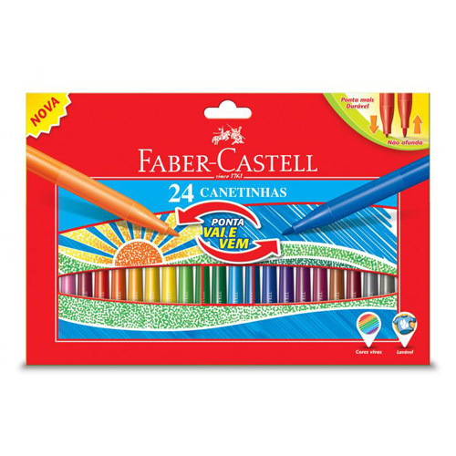 24-kusová sada barevných popisovačů značky Faber Castell se speciálním zasouvacím hrotem. Při psaní, kdy je na popisovač vyvinut větší tlak se hrot nezničí, ale zasune se do popisovače. Inkoustová náplň je vypratelná z většiny textilií; každá fix obsahuje kolonku na jméno dítěte.