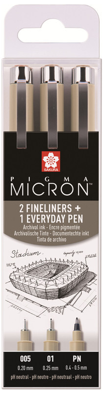 Cienkopisy kreślarskie 3szt. 0,20, 025, 04-05mm Urban, Pigma Micron, Sakura