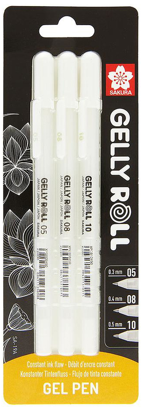 Długopisy żelowe Gelly Roll kpl. 3 szt. 05, 08, 10 biały BLXPGB3A, Sakura