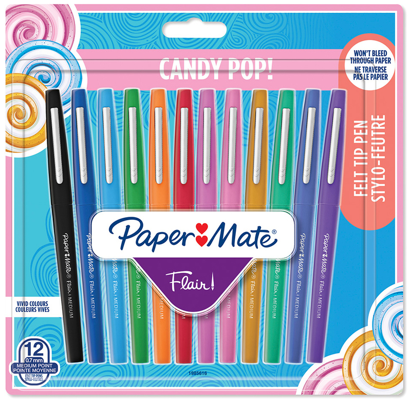 Przemień codzienne pisanie w cukierek dla oczu z flamastrami Paper Mate® Flair® Candy POP™. Wnieś w swoje notatki, szkice, rysunki i projekty słodycz koloru, który sprawi, że nawet najnudniejsze z nich staną się prawdziwym smakołykiem. Oto doświadczenie gładkiego, szybkoschnącego tuszu w barwach niczym cukierki, który nie przecieka i nie rozmazuje się. Wyposażone są w końcówkę medium, która zapewnia wyraźne, głębokie linie, doskonałe do pisania i rysowania.