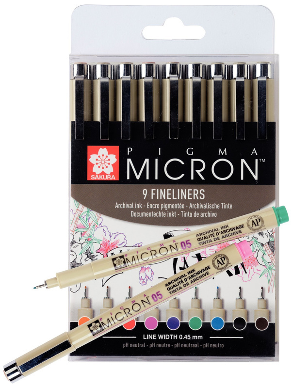 Cienkopisy 9-kol. Pigma Micron 05, Sakura