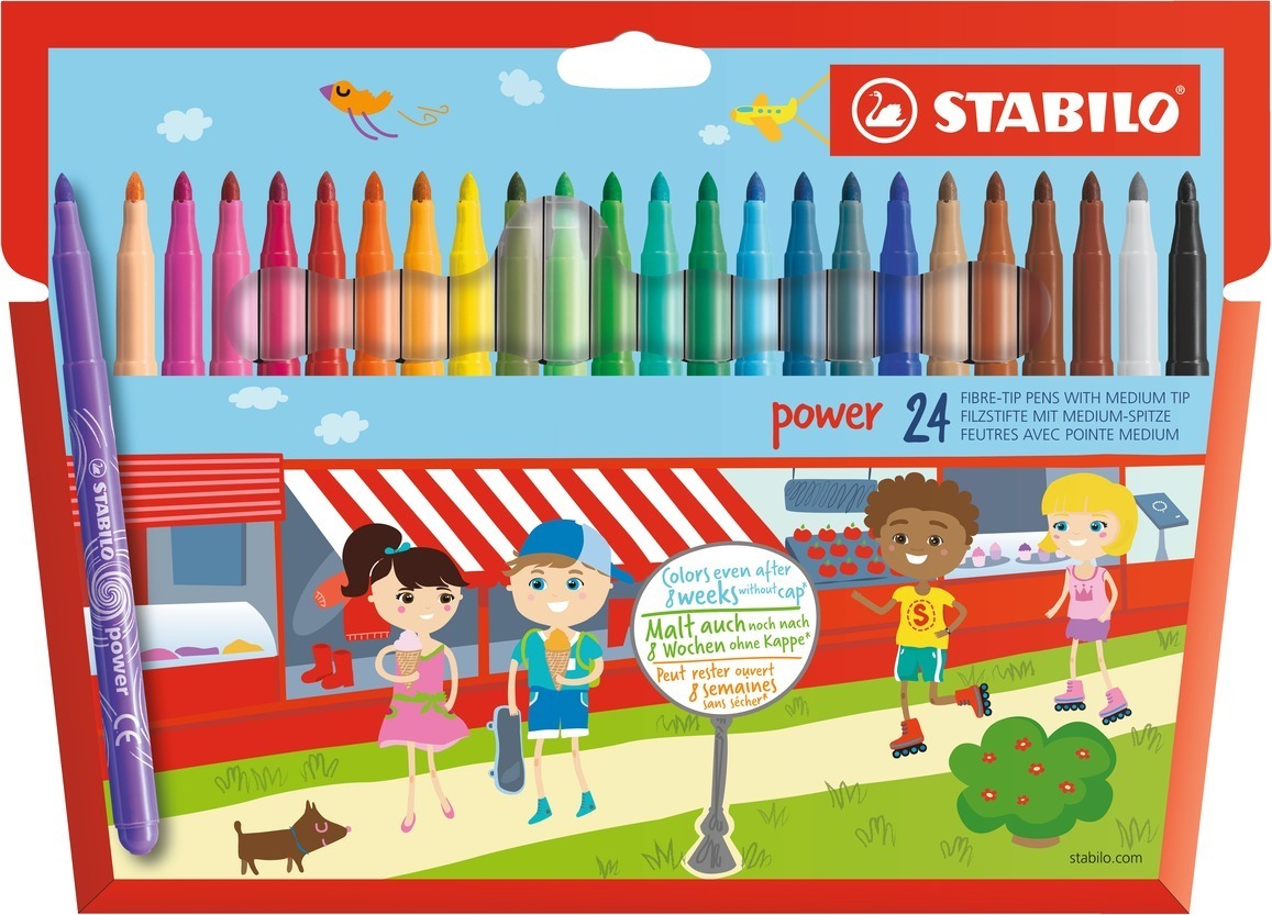S fixkami STABILO Power môžete maľovať presné línie o šírke 2 mm a využiť širokú paletu 24 rôznych farieb, ktoré vaše výtvory oživia a určite potešia oči i dušu.