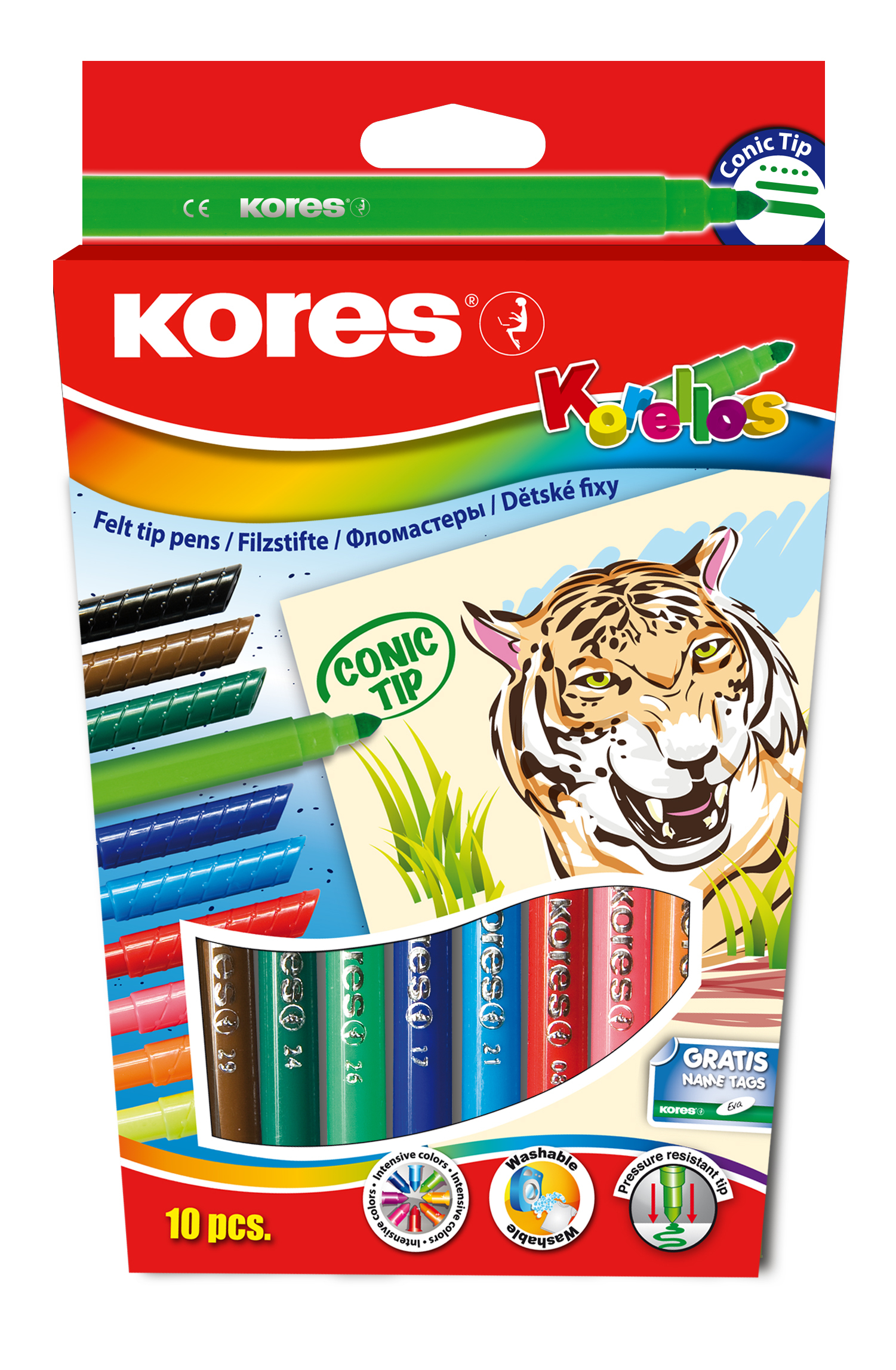 Dětské fixy KORELLO - silný hrot, 10 barev