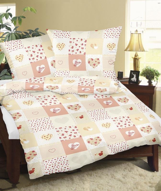 Povlečení flanelové - srdce patchwork - 140x220, 70x90 cm