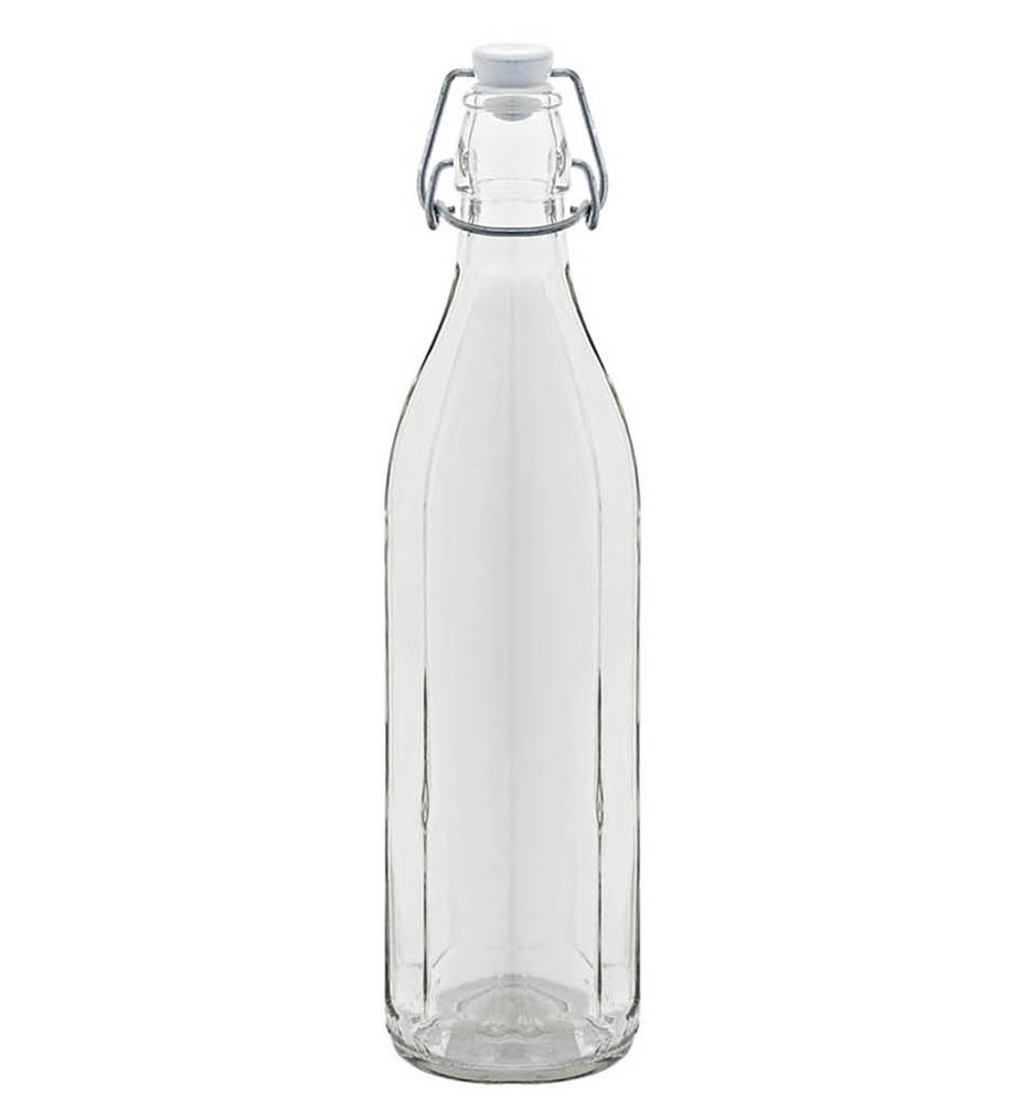 skleněná láhev kulatého (osmiúhelníkového) tvaru s patentním uzavíráním a čirým těsněním láhev je vhodná na olej, ocet, sirup, džus, šťávu apod. patentní uzávěr zabrání vytečení náplně v každé poloze objem 500 ml doporučujeme ruční mytí EAN 0000042459804 prečítať celé