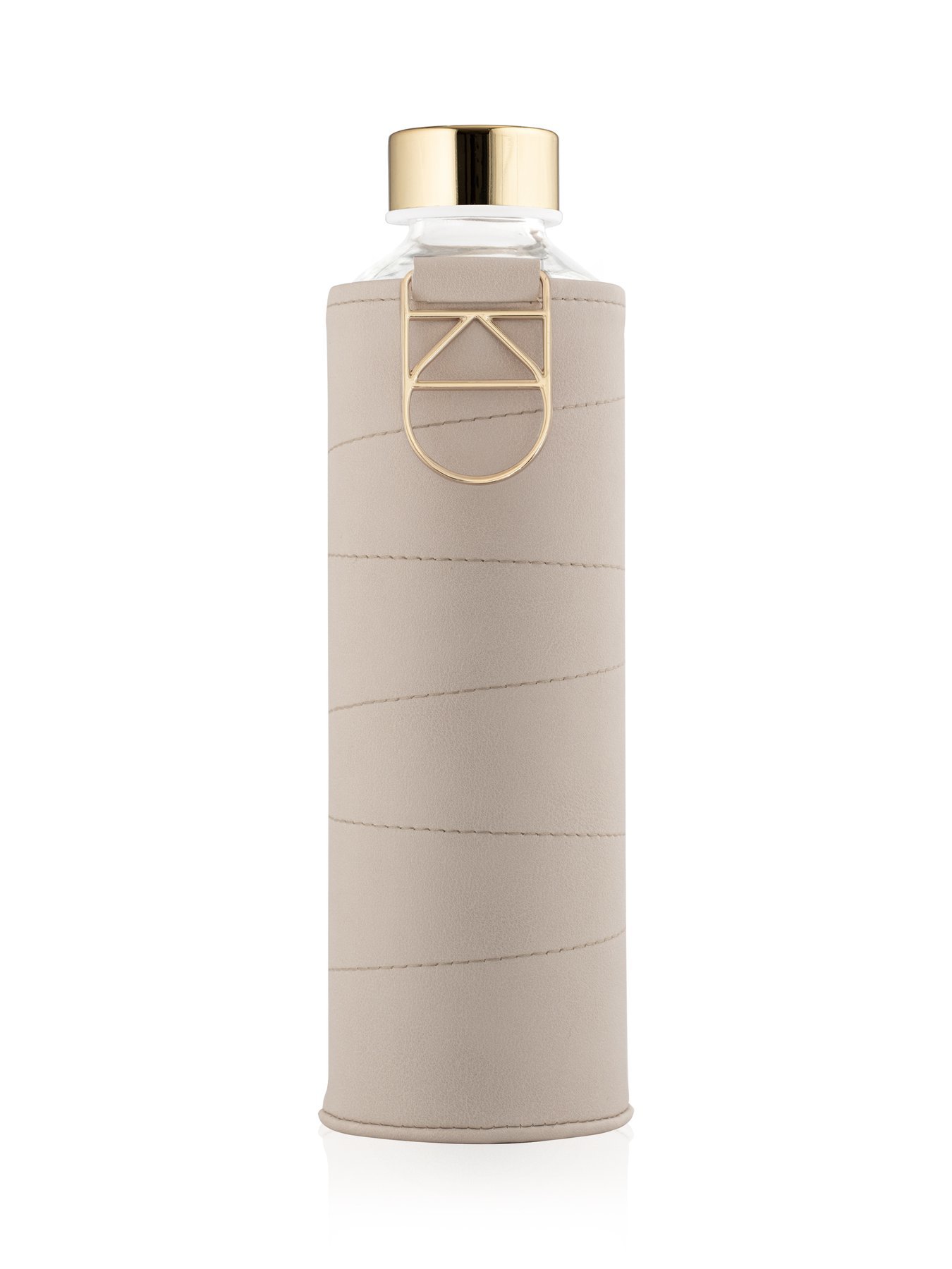 EQUA Mismatch Beige 750 ml designová luxusní ekologická skleněná lahev na pití s obalem z umělé kůže