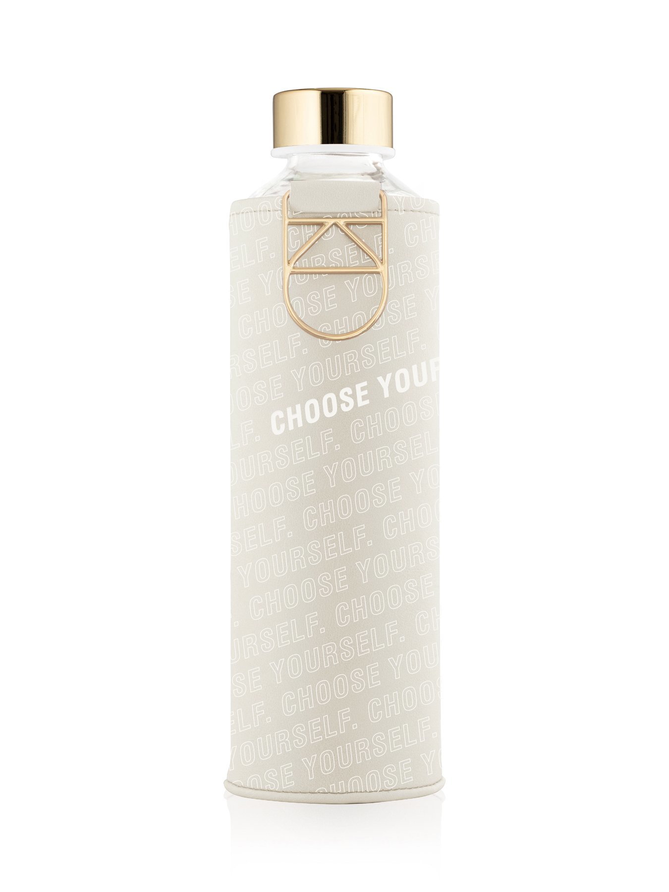 EQUA Mismatch Choose Yourself 750 ml designová luxusní ekologická skleněná lahev na pití s obalem z umělé kůže