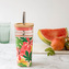 Quokka Liquid Cube - Skleněný hrnek 540 ml s brčkem z nerezové oceli (Pink Jungle Flora)