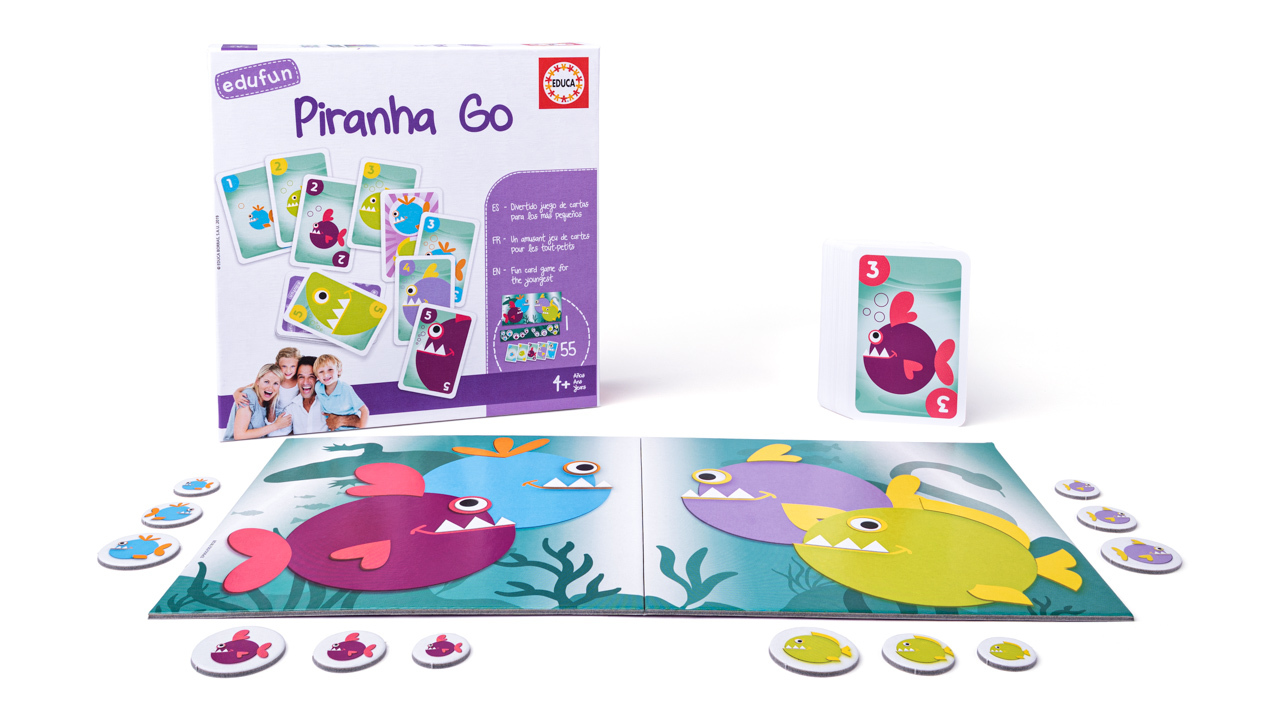 Zábavná desková hra s kartami – EDUCA – Piraně je určena pro děti od 4 let. Cílem hry je zbavit se karet s piraňami dřív než ostatní hráči. Dávej pozor! Řeka je plná nebezpečí…Hra obsahuje: 40 piraní ve 4 barvách a velikostech, 15 zvláštních kartiček (4 kartičky s dvojitou piraňou, 4 kartičky s...