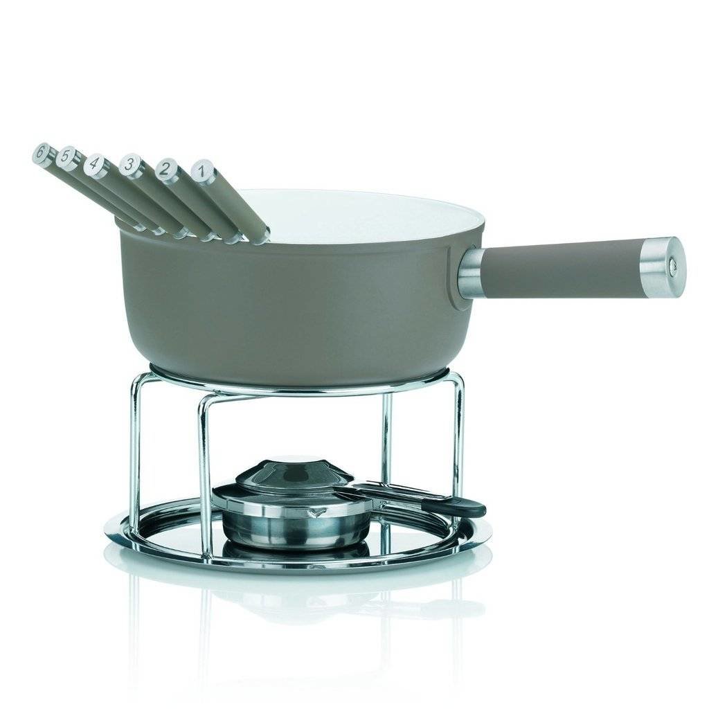 Keramická souprava na přípravu fondue Lancy v šedé barvě, s objemem 1 l. Speciální keramický hrnec pomalu ohřívá a taví sýr. prečítať celé