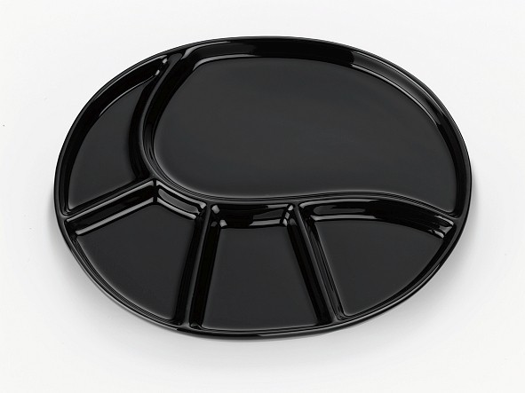 servírovací talíř rozdělený na 5 částívyrobený z keramiky z lesklou glazurou v temné černé barvěideální pro servírování surovin při přípravě fonduestejně dobře poslouží k podávání pochutin, předkrmů i dipůrozměry: 28 x 22 x 2,5 cmbarva: černá, leskláznačka: KELA prečítať celé