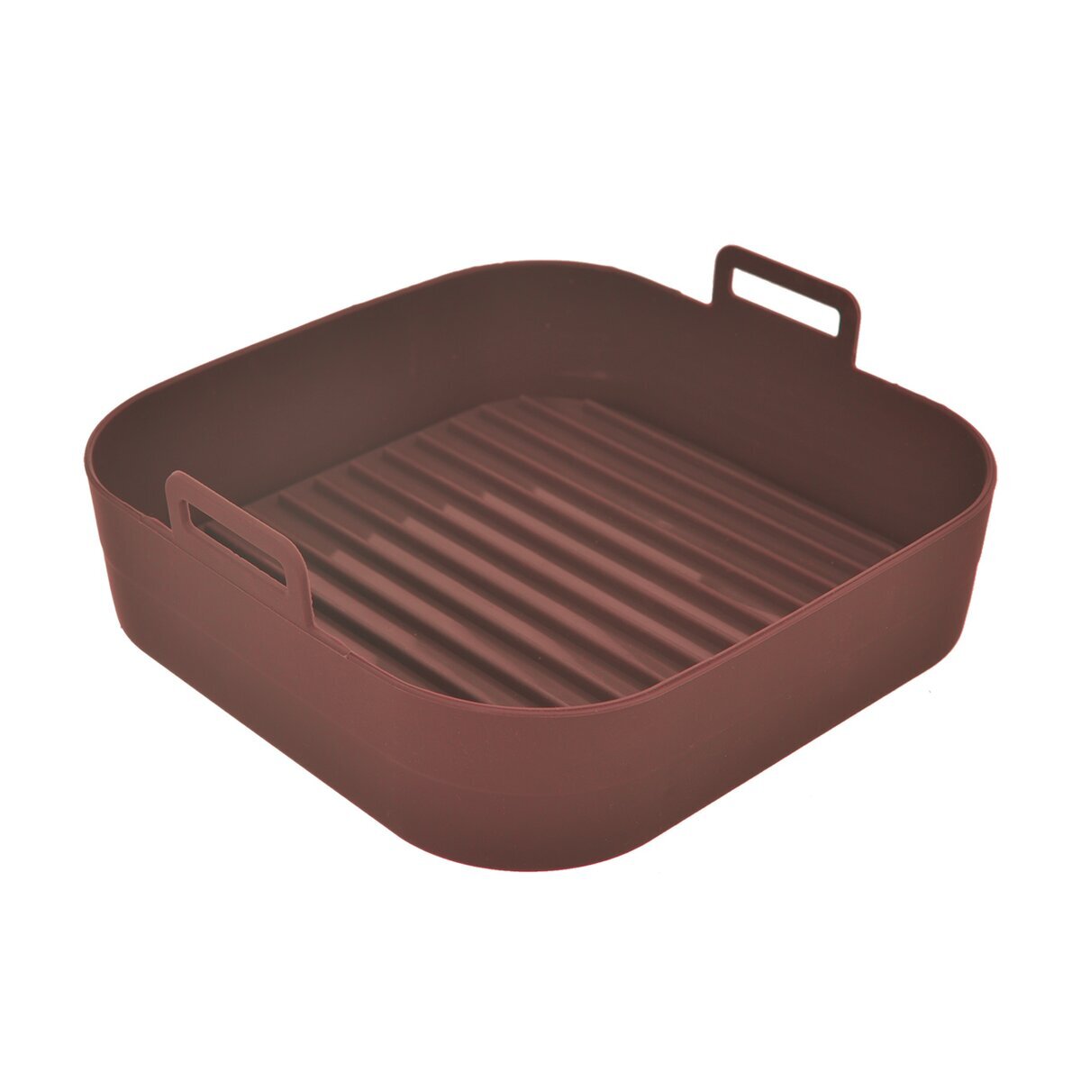 Štvorcová silikónová forma s rozmermi 17,5 x 17,5 cm a výškou 4,5 cm (s úchytmi 6,5 cm) je určená nielen do teplovzdušnej fritézy, ale vzhľadom na svoju odolnosť v rozsahu teplôt od -40 °C do +220 °C ju môžete používať aj v klasickej rúre alebo mikrovlnnej rúre. Je ideálna na prípravu zeleniny, cestovín alebo diétneho jedla. Po pečení ju jednoducho umyjete v umývačke, čo výrazne uľahčuje údržbu vašej kuchynskej výbavy.