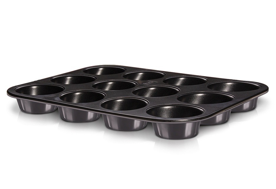 materiál: uhlíková ocel s titanovým povrchemnepřilnavý titanový povrch vhodný pro pečení s minimem tukuvelmi pohodlná údržba, jídlo se nepřipalujerozměry: 35 x 26,5 x 3 cmvhodné do trouby do teploty 240°Cna 12 ks muffinů nebo cupcakesčerná vnější barvakolekce Black Rose CollectionECOfriendly,...