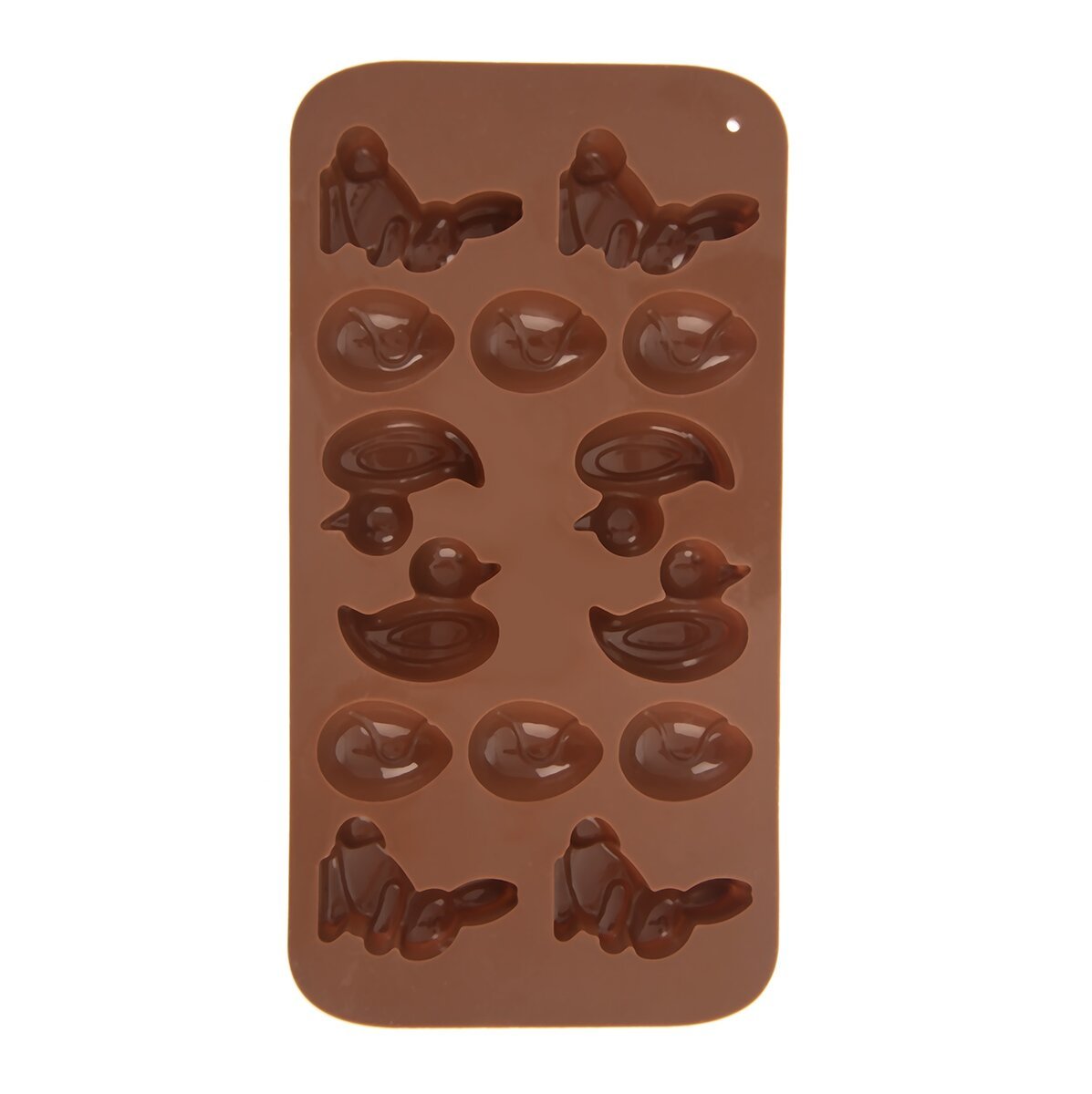 Silikonová forma Vám vytvoří velikonoční dobroty z piškotového, litého těsta nebo čokolády. Hnědá. Materiál: silikon. 14 formiček, 3 tvary (zajíček v. 4,5 cm, kačenka v. 3 cm, vajíčko v. 3 cm). Snáší vysoké teploty. (od -40 °C do +220 °C), nepřejímá chutě ani vůně z použitých potravin. Vhodná do myčky na nádobí. Rozměry: 20,5x10,5x1,5 cm.