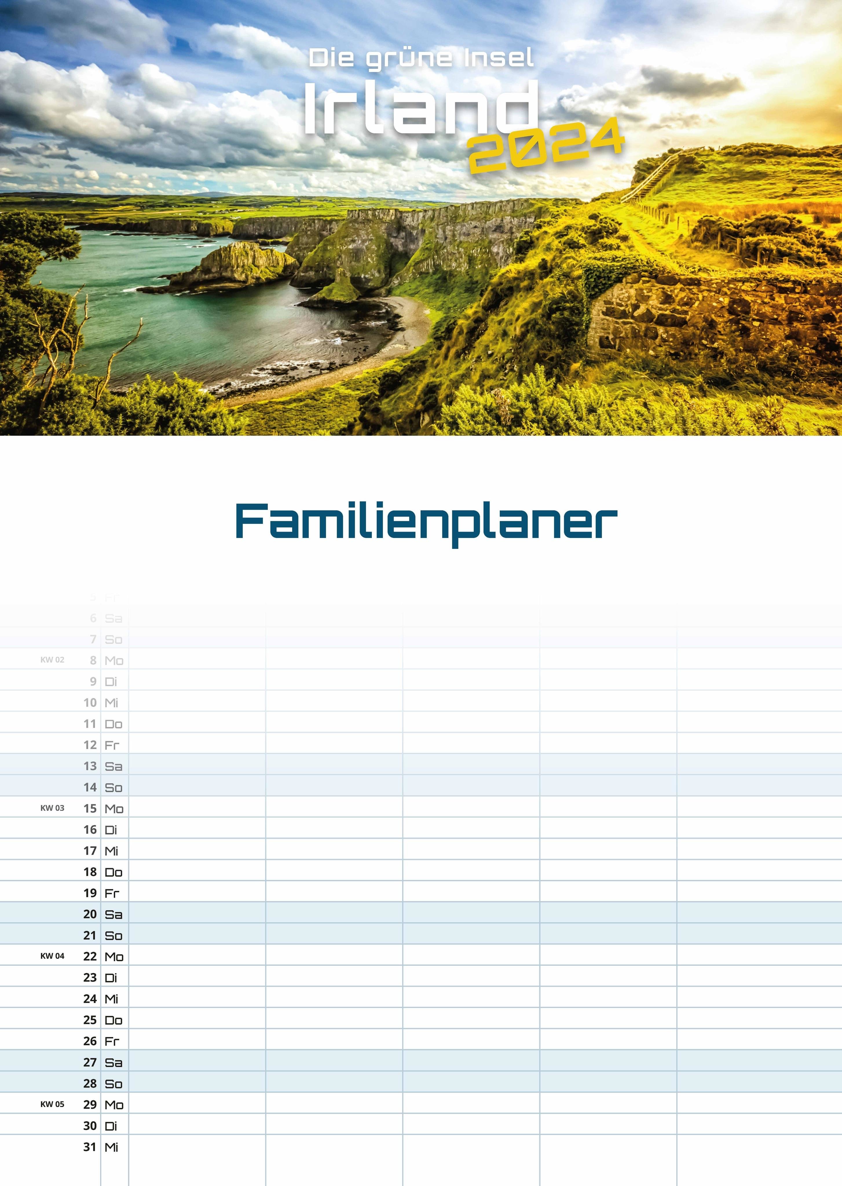 Irland - Die grüne Insel - 2024 - Kalender DIN A3 (Familien-/Terminplaner) (německy)