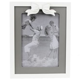 Krásný fotorámeček s mašlí. Rozměry fotorámečku : 19,2 x 1,2 cm, výška 24,3 cm. Rozměry na fotografii : 12 x 17 cm. Barva : bílá. Materiál : MDF. prečítať celé
