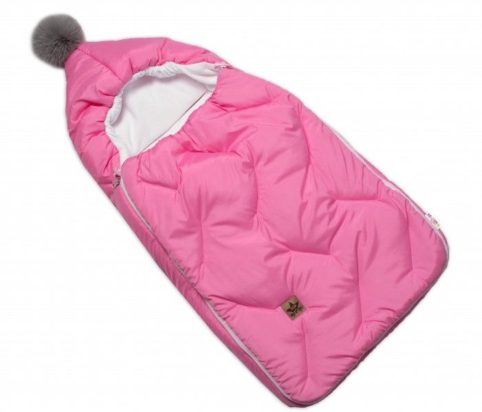 Dětský fusak Baby Nellys s kapucí a kožešinovou bambulí, růžový, cukříkový