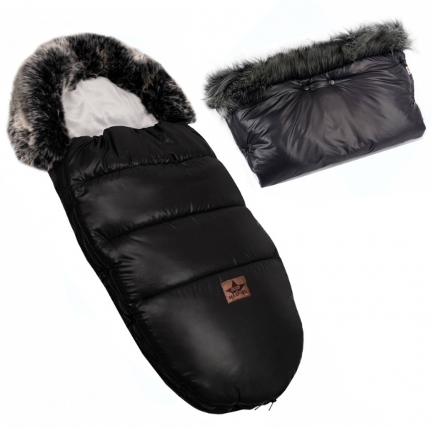 Zimní fusak s kožešinou + rukávník zdarma, Baby Nellys, 50 x 100cm, černý