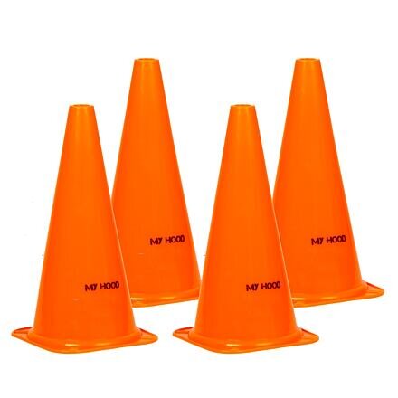 My Hood Tréninkové kužely 4 ks Tréninkové kužely vhodné pro práci s míčem, dětské hry, značení dráhy, cílu apod. Tyto kužely uvítají trenéři, ale i rekreační sportovci. Specifikace kuželů My Hood:materiál: plastvýška kuželu: 40 cmšířka a hloubka kuželu: 22 cmdoporučený věk: 5+