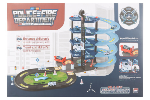 Plastová policejní garáž s výtahem. Rozměry složené garáže cca 90 x 52 x 47 cm. Rozměry balení cca 55 x 39 x 8 cm. Obsahuje 4 kovová autíčka a vrtulník. Věk 3+ prečítať celé