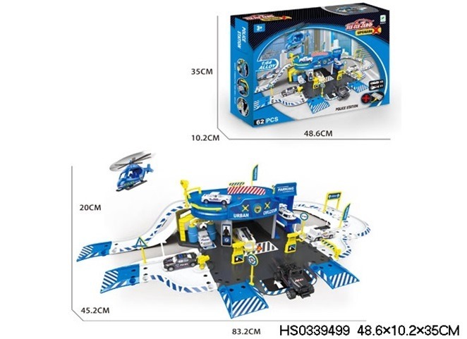 Policejní stanice garáž s příslušenstvím (sada 62 ks) Rozměr garáže po rozložení: 83,2 × 45,2 × 20 cm Obsah sady: policejní stanice s garáží, kovový model autíčka 1:64 (6 ks) a vrtulník prečítať celé