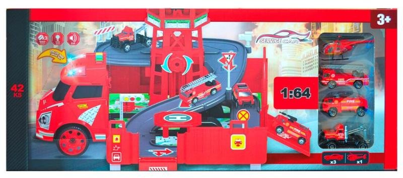 sady: hasičské auto/garáž 2v1 (funkce přeměny z auta na garáž a zpět),
