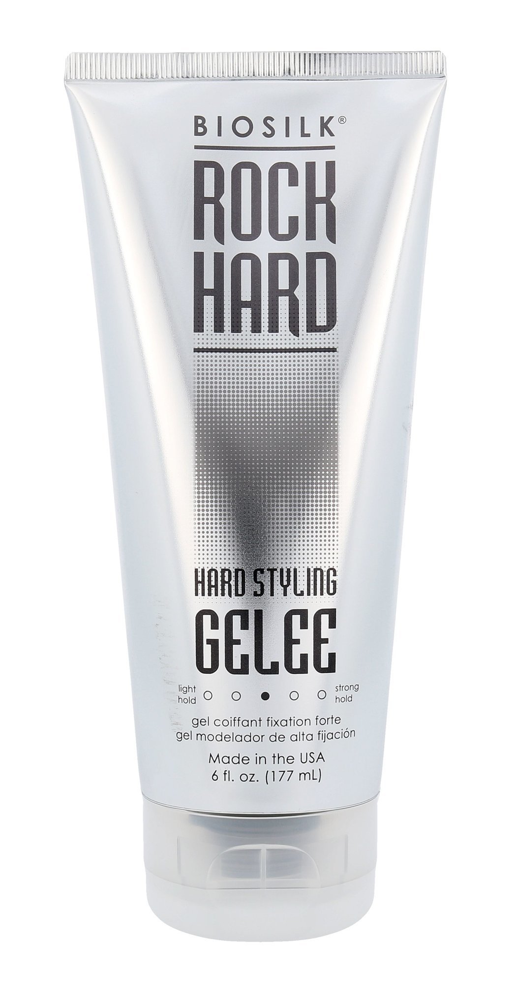 Gel Farouk Systems Biosilk Rock Hard Hard Styling Gelee se středně silnou fixací umožňuje vytvořit dlouhotrvající účesy. Chrání vlasy před teplem, vlhkostí a UV zářením. Nezanechává zbytky ve vlasech.