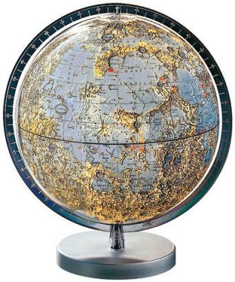 Mond-Leuchtglobus, silberfarbener Kunststoffuß, transparenter Meridian (německy)