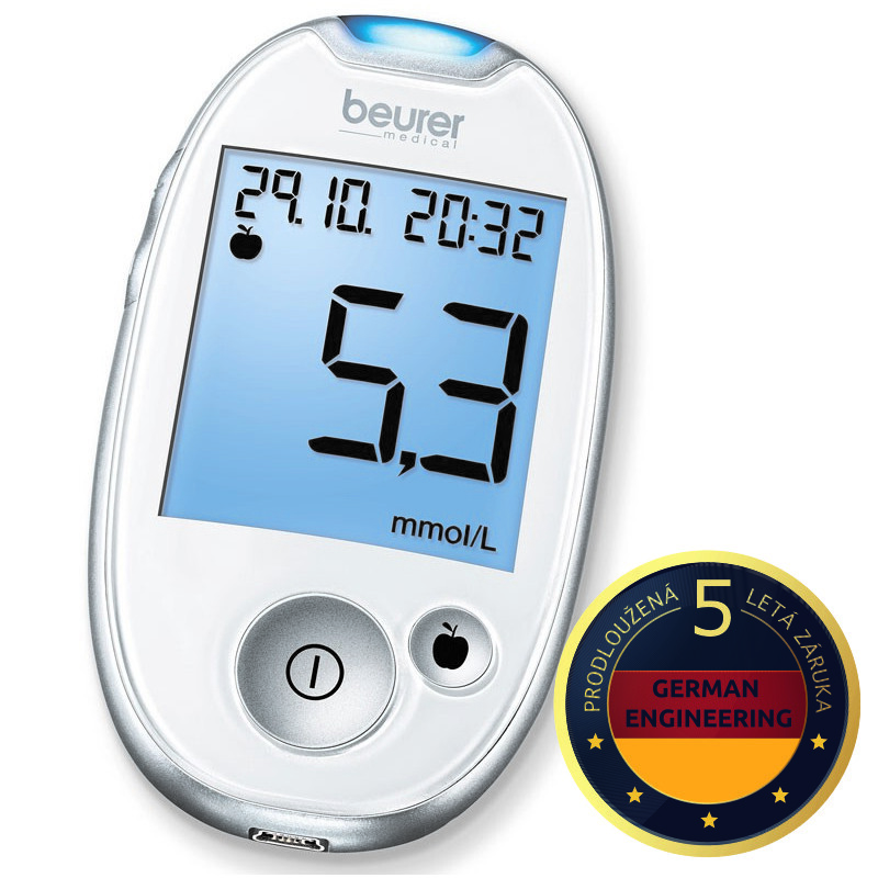 Tento přístroj je určen pro měření obsahu cukru v krvi. Je vhodný pro osobní použití. Codefree - bez kódování. snadné použití: podsvícený displej, podsvícený slot na test. proužky, široké proužky, jednoduché měření moderní a praktický design označování: před jídlem, po jídle, obecné označení...