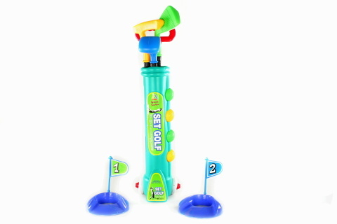 Golf plast o délce cca 50 cm na kolečkách se třemi plastovými holemi s různým zakončením,4 míčky a dvěmi plastovými jamkami. Baleno v síťce.Věk 3+ prečítať celé