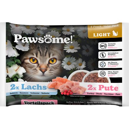 Pawsome! Adult Light s krůtím/ s lososem Multipack 4x85g