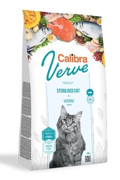 Calibra Cat Verve Sterilised Herring je kompletní krmivo bez obilovin s vysokým obsahem čerstvého rybího masa. Receptura je určená pro sterilizované a kastrované kočky.Čerstvé maso ze sledě a z lososa tvoří 29 % celkového obsahu. Proteiny v receptuře jsou ze 75,4 % živočišného původu. Krmivo tak...