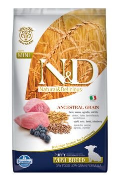 N&D Low Grain Jahňacie & Čučoriedka Puppy Mini Dog je kompletné a starostlivo vyvážené krmivo navrhnuté špeciálne pre šteňatá malých plemien a pre gravídne či dojčiace feny. Vďaka vysokému podielu kvalitného jahňacieho mäsa a jedinečnej kombinácii obilnín a superpotravín poskytuje vášmu šteňaťu všetko potrebné pre zdravý rast, energiu a vitalitu.