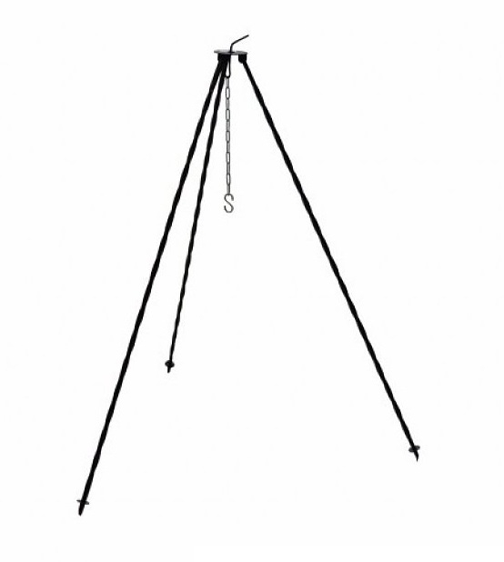 Ocelová lakovaná trojnožka pro zavěšení kotlíku nad ohniště.