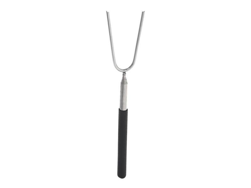 Teleskopická opékací vidlice se dvěma hroty vám skvěle poslouží při opékání špekáčků, klobás, zeleniny nad ohněm. Díky své délce až 86 cm si nepopálíte ruce v žáru ohně. Také se skvěle hodí na výlet, kdy plánujete opékání, krásně ji složíte na délku 24,5 cm a uložíte do batohu – je skladná, lehká. Ochranné kryty na hrotech jehlic, plastová rukojeť nepálí do dlaní.
