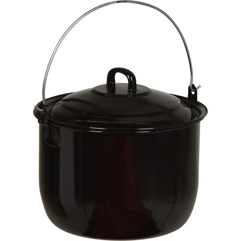 smaltovaný hrnec s poklicí v černé barvě, uhlíková ocel 0,6 mm, průměr 24 cm, obsah 6,7 litru, hmotnost mísy 850 gramů, hmotnost poklice 275 gramů, umělecké dílo ambiance, každý s visačkou prečítať celé