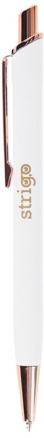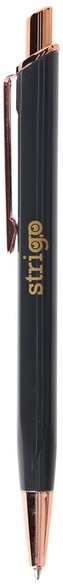 Długopis żelowy Strigo z kolekcji Deco w 4 kolorach obudowy. Wykonany z trwałego, odpornego na uszkodzenia tworzywa. Solidna konstrukcja gwarantuje niezawodność i komfort pisania. Metalowa, elegancka obudowa o subtelnym wykończeniu i złotych detalach. Kwadratowy korpus. Tusz żelowy zapewnia wyjątkową miękkość i płynność pisania. Szybkoschnący i nie rozmazuje się. Kolor tuszu: niebieski.