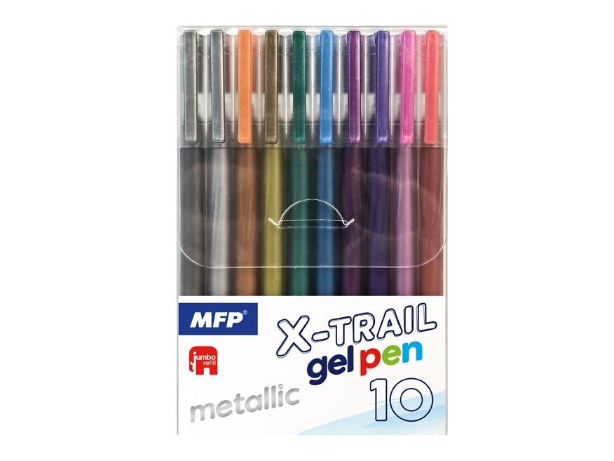 Gelová metalická pera – sada 10 ks - barvy, které vyniknouLesklé barvy, které přitáhnou pozornost. Sada 10 gelových metalických per nabízí širokou paletu odstínů s jemným kovovým efektem. Na světlém i tmavém papíře se jejich barvy krásně odrážejí a dodají každému zápisu jedinečný styl.Každý tah...