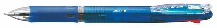 45972 Kuličkové pero "Clip-on Slim 4C", 4 barvy, 0,24 mm, stiskací mechanismus, modré tělo, ZEBRA
