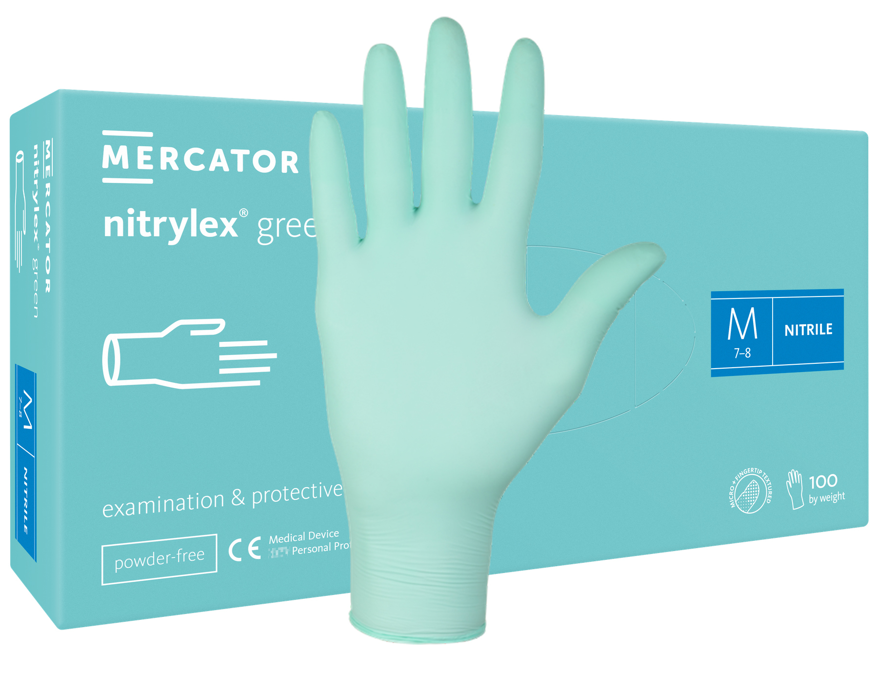 Jednorázové nitrilové zdravotnické rukavice Mercator NITRYLEX zelené 100 ks Velikost: M